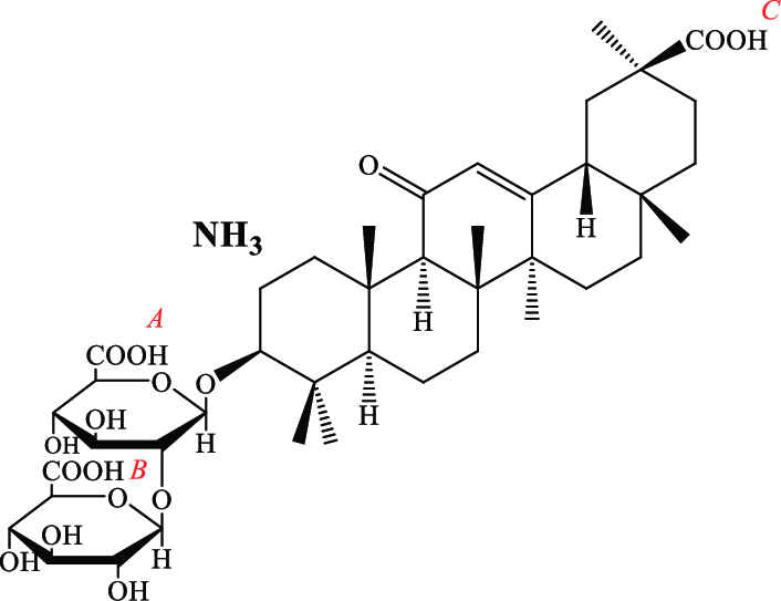 Cấu trúc hóa học: Đây là hợp chất glycoside gồm aglycone glycyrrhetinic acid gắn với hai phân tử axit glucuronic. Dạng muối amoni giúp cải thiện khả năng hấp thu và giảm một phần vị đắng. Phân tử lượng khoảng 839,96 g/mol (dạng trihydrate).