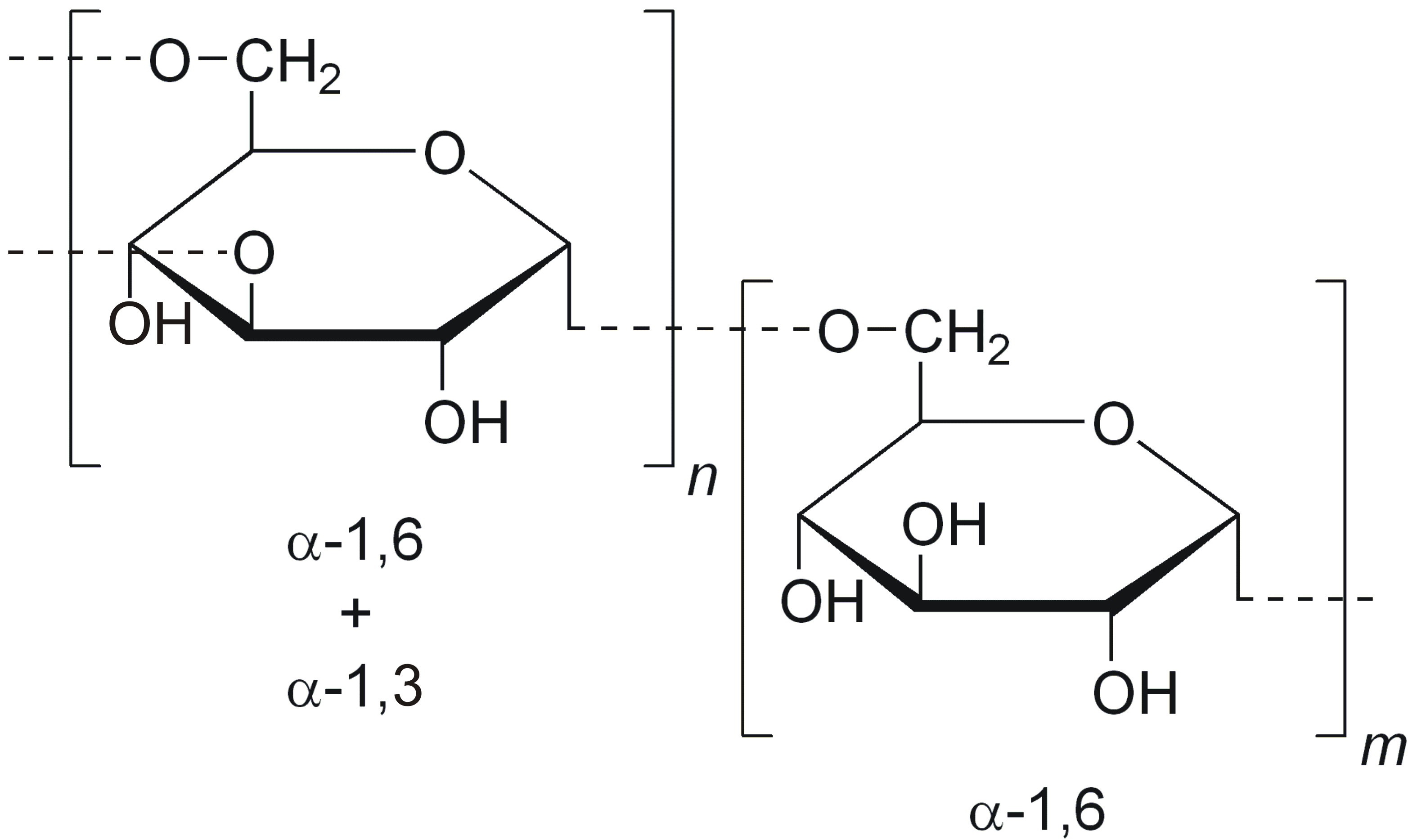 Dextran 70 là một polymer của D-glucose, liên kết chủ yếu qua liên kết glycosidic α-1,6, với một số nhánh liên kết α-1,3. Cấu trúc này mang lại cho Dextran 70 các đặc tính sau: