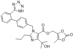 - Sau khi uống, olmesartan medoxomil được thủy phân thành olmesartan trong đường tiêu hóa.