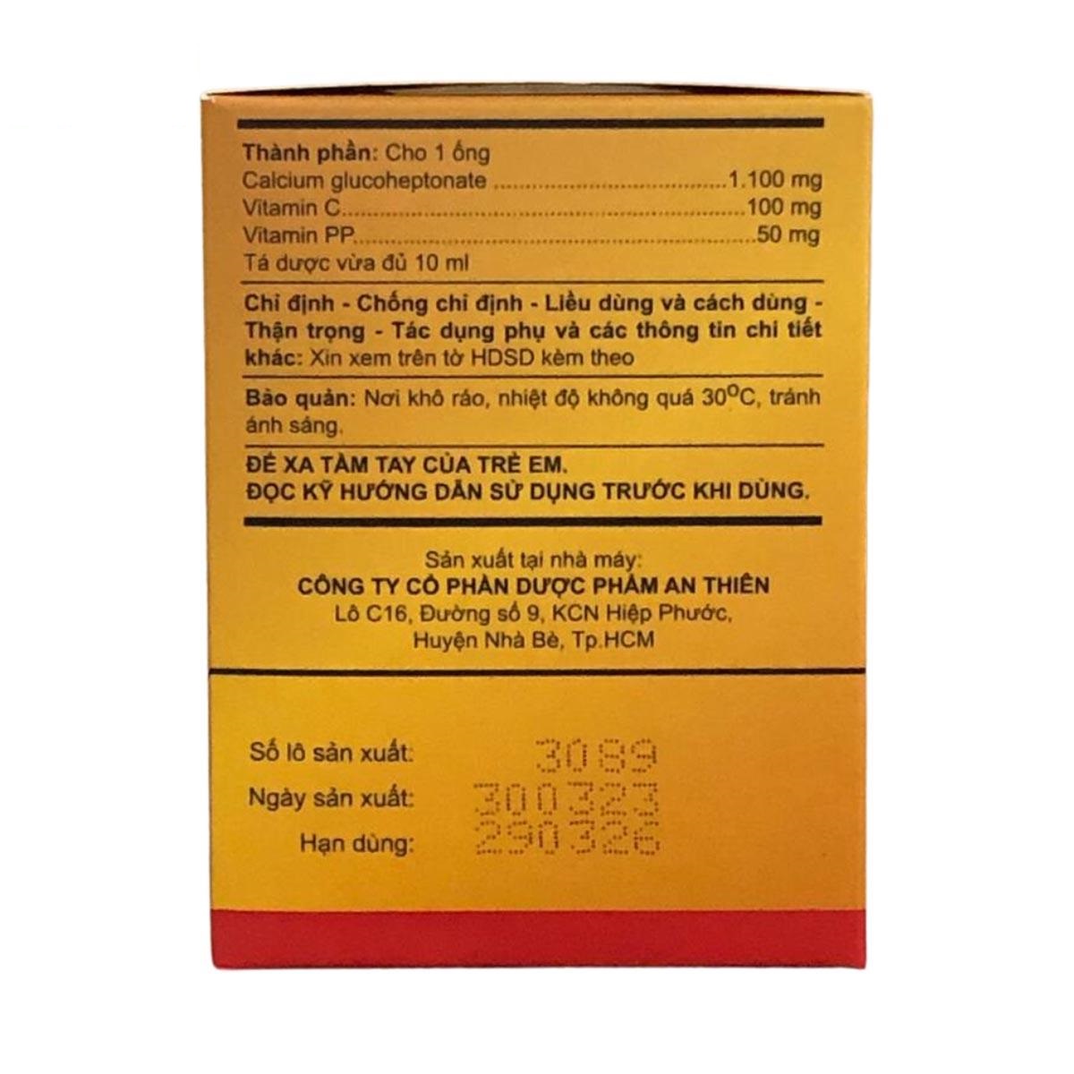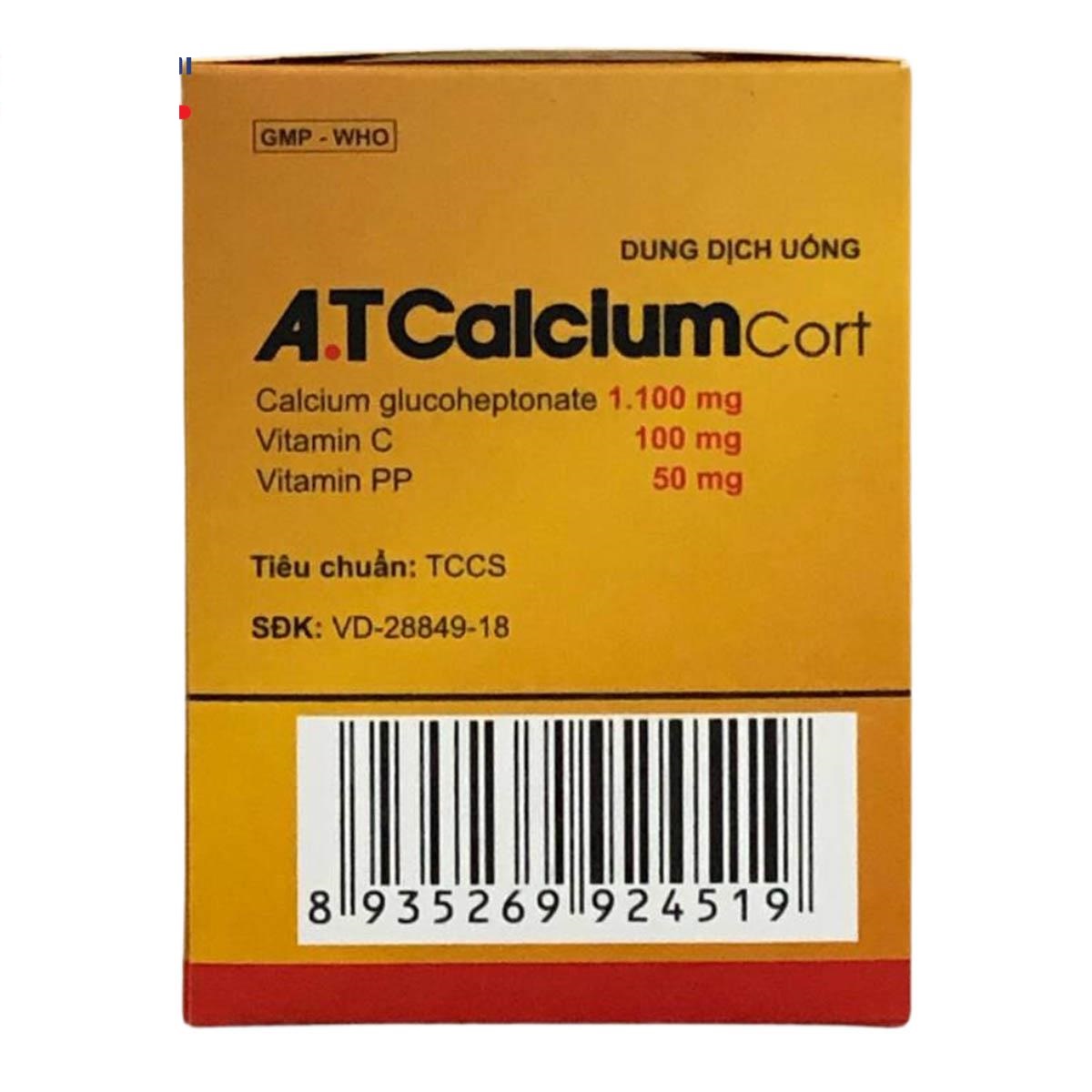 Thành phần chi tiết của A.T Calcium Cort 10ml (Calcium, Vitamin C, Vitamin PP)