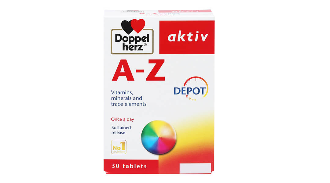 A-Z Depot là một loại thực phẩm bảo vệ sức khỏe dạng viên nén, được sản xuất bởi Doppelherz – thương hiệu dược phẩm hàng đầu Đức với hơn 100 năm kinh nghiệm. Sản phẩm thuộc dòng Doppelherz Aktiv, tập trung vào việc cung cấp vitamin và khoáng chất tổng hợp từ A đến Z, kết hợp với lutein – một chất chống oxy hóa mạnh mẽ. Không giống các loại vitamin thông thường, A-Z Depot sử dụng công nghệ Depot đặc biệt, giúp dưỡng chất được giải phóng dần dần trong ruột, tăng khả năng hấp thụ lên đến 90% và duy trì hiệu quả suốt cả ngày.