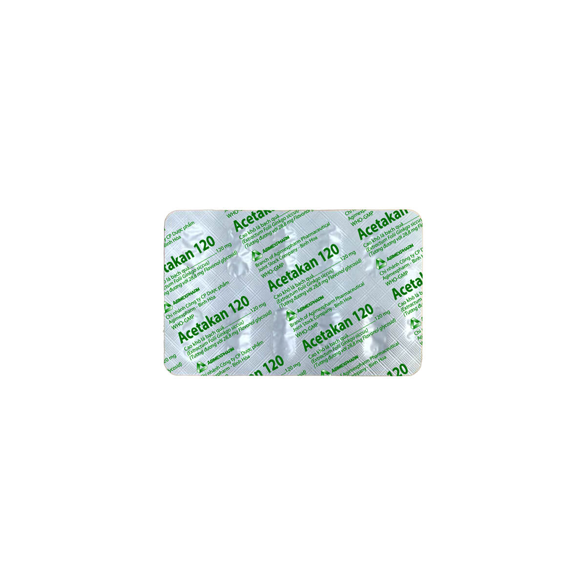 Acetakan 120 thường được dung nạp tốt, các tác dụng phụ thường nhẹ, hiếm gặp và có thể tự khỏi. Cụ thể: