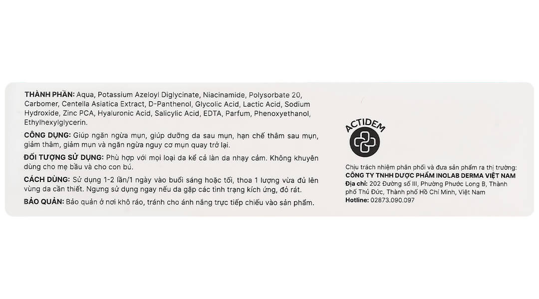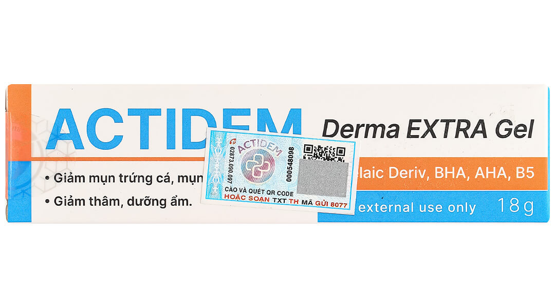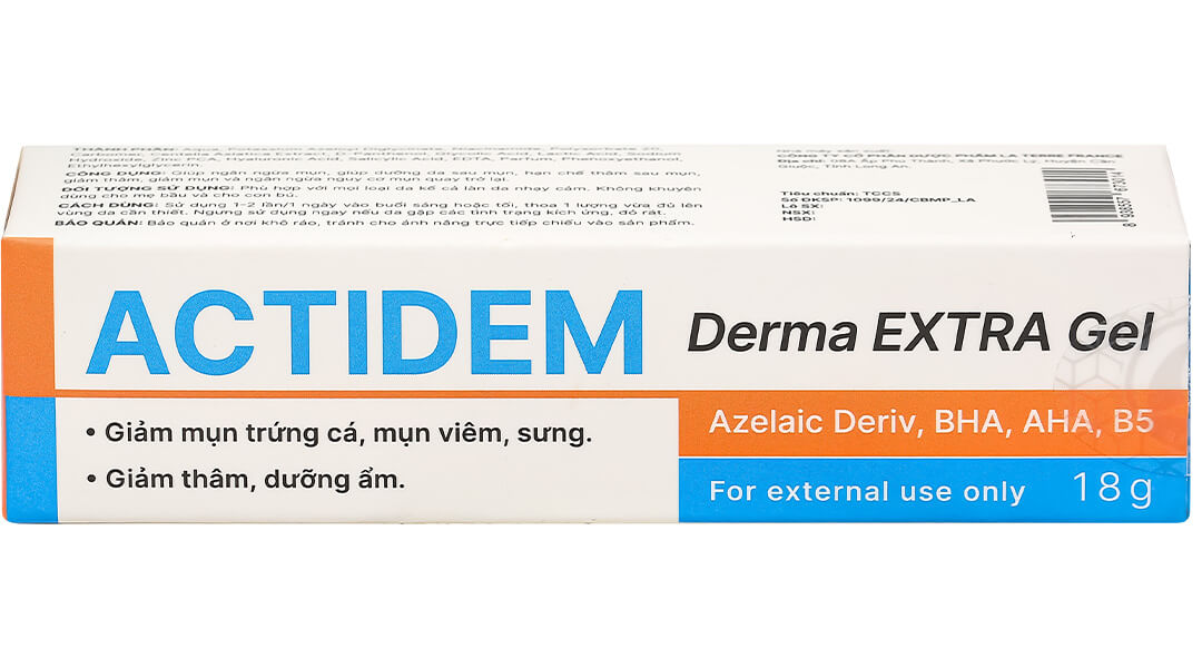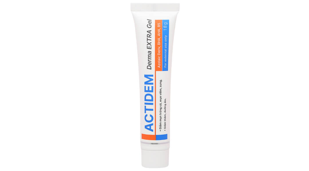 Actidem Derma Extra Gel 18g là giải pháp chăm sóc da chuẩn y khoa, hiệu quả trong điều trị mụn viêm, mụn sưng đỏ, mụn bọc, và làm mờ thâm sau mụn. Với bộ ba “hoạt chất vàng” Azelaic Deriv, AHA, Niacinamide, cùng Vitamin B3, B5, và HA, sản phẩm giúp giảm mụn nhanh, làm sáng da, và ngăn ngừa mụn tái phát, phù hợp cho da dầu và da hỗn hợp. Để đạt hiệu quả tối ưu, cần sử dụng đúng cách, kết hợp kem chống nắng và dưỡng ẩm, đồng thời mua tại các nhà thuốc uy tín như Nhà thuốc Bạch Mai, hoặc website chính hãng nhathuocbachmai.vn.