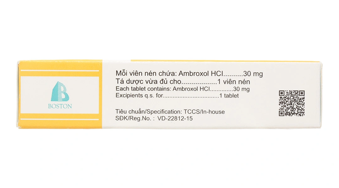 - Hoạt chất chính: Ambroxol hydrochlorid 30mg