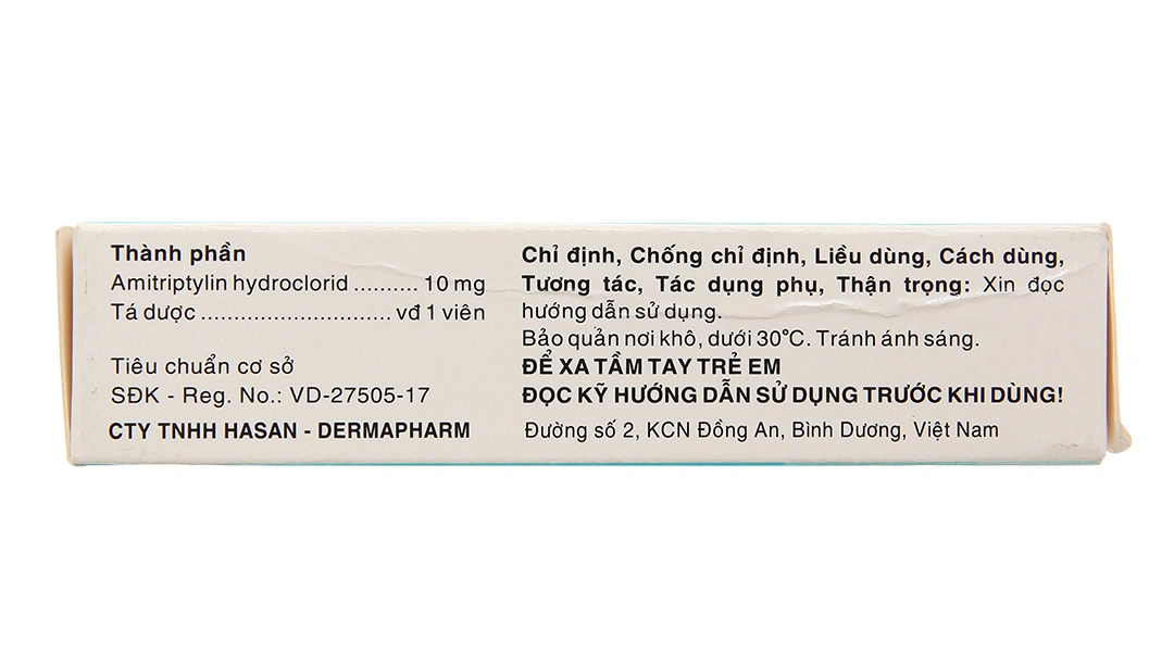 - Hoạt chất chính: Amitriptylin hydroclorid 10mg (tương đương amitriptylin base).