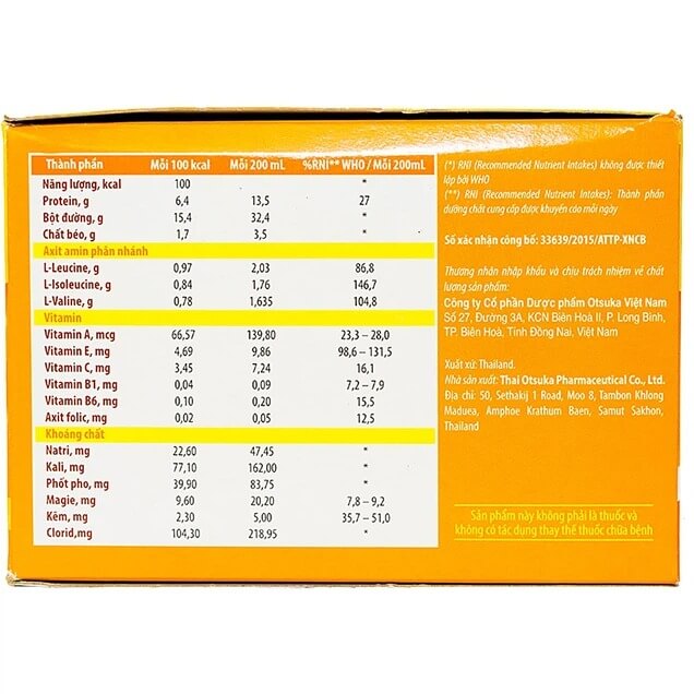400kcal/gói (200ml dung dịch) |