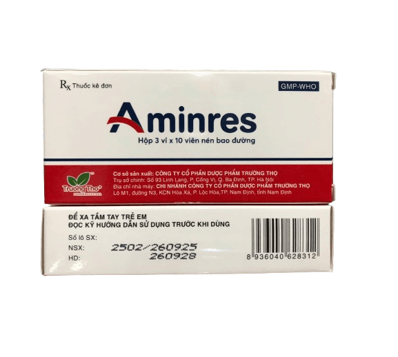 Aminres là thuốc viên nén bao đường, có số đăng ký 893110260525, do Công ty Cổ phần Dược phẩm Trường Thọ (Trường Thọ Pharma) – một doanh nghiệp dược phẩm uy tín tại Việt Nam – sản xuất. Nhà máy đặt tại Khu Công nghiệp Hòa Xá, Nam Định.
