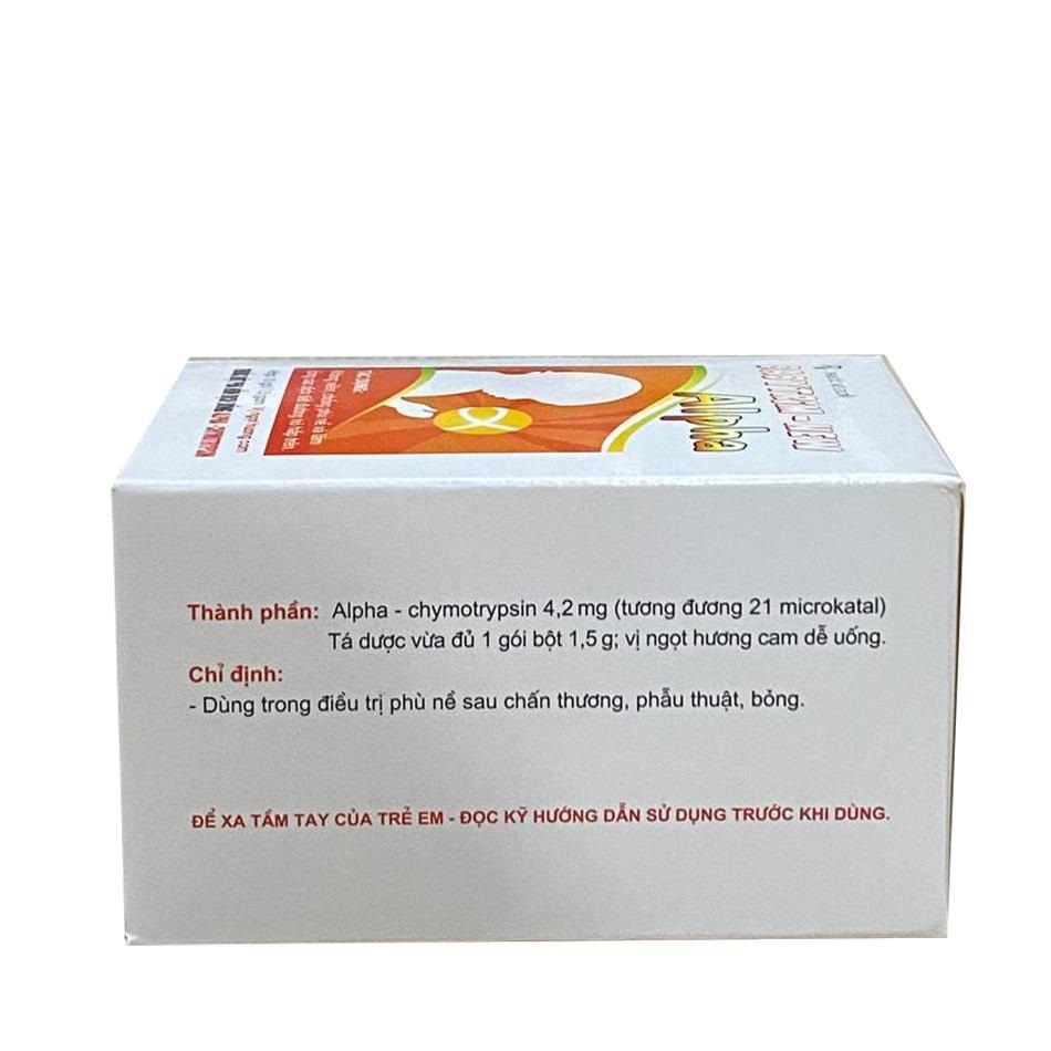 - Alphachymotrypsin: 4,2 mg (tương đương 21 µkatal) – Đây là enzyme protease chiết xuất từ tuyến tụy động vật, có vai trò phân hủy các protein gây viêm và phù nề, giúp giảm sưng, tăng lưu thông máu và thúc đẩy quá trình lành vết thương.