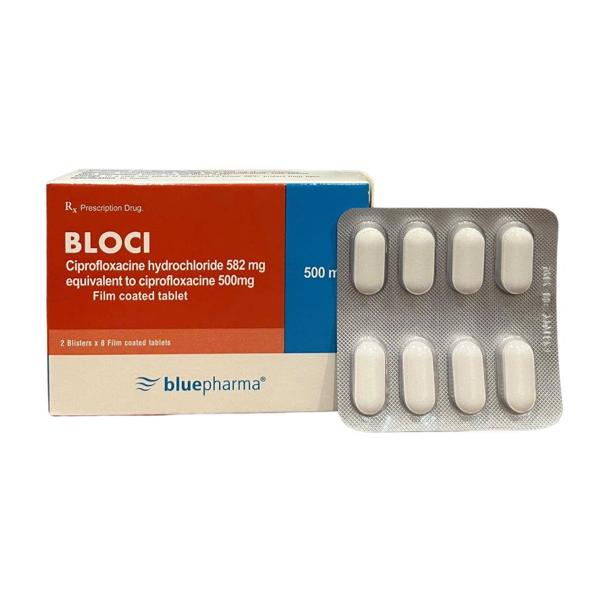 Bloci 500mg là viên nén bao phim chứa Ciprofloxacin hydrochloride tương đương 500mg Ciprofloxacin, do Bluepharma – Indústria Farmacêutica, S.A. (Bồ Đào Nha) sản xuất. Thuốc được đăng ký lưu hành tại Việt Nam với số đăng ký VN-22416-19, thuộc nhóm kháng sinh quinolone thế hệ thứ hai, có phổ tác dụng rộng đối với vi khuẩn hiếu khí và một số vi khuẩn kỵ khí.