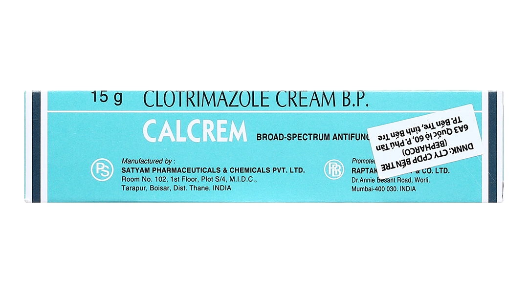 Calcrem 15g là sản phẩm nhập khẩu Ấn Độ chất lượng, giá rẻ, hiệu quả cao với clotrimazole 1% – tiêu chuẩn vàng cho nấm da thông thường. Thuốc giúp giảm nhanh triệu chứng ngứa, đỏ, bong tróc trong các bệnh nấm da chân, nấm đùi, lang ben, hăm nấm, với tỷ lệ khỏi cao nếu dùng đúng.