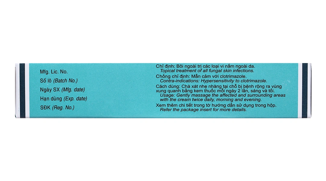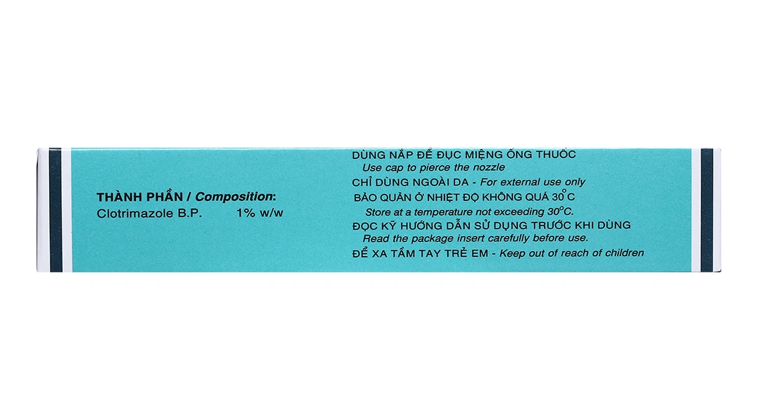 - Hoạt chất chính: Clotrimazole 10mg (1% kl/kl).