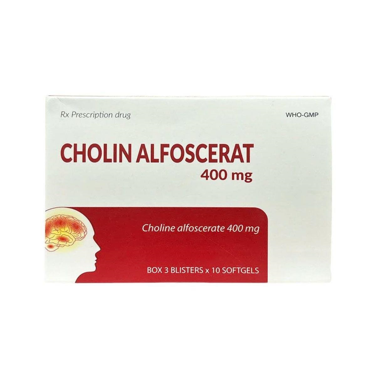 Cholin Alfoscerat 400mg (tên quốc tế: Choline Alfoscerate hoặc Alpha-Glycerylphosphorylcholine – α-GPC) là thuốc thuộc nhóm tiền chất cholinergic, được bào chế dưới dạng viên nang mềm hoặc viên nén. Mỗi viên chứa 400mg hoạt chất choline alfoscerate – một dẫn xuất bán tổng hợp từ phosphatidylcholine.