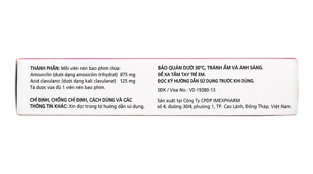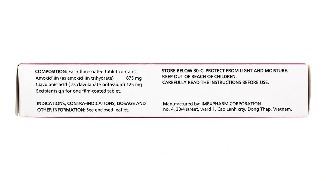 Claminat 1g Imexpharm hiện là kháng sinh phối hợp hiệu quả nhất – an toàn nhất – kinh tế nhất cho các nhiễm khuẩn cộng đồng nặng tại Việt Nam. Với nhà máy đạt chuẩn châu Âu, hàm lượng chuẩn 875/125mg, công nghệ bao phim độc quyền và giá chỉ bằng 1/3 hàng nhập khẩu, đây chính là “vũ khí” mạnh nhất trong tay bác sĩ và bệnh nhân Việt.