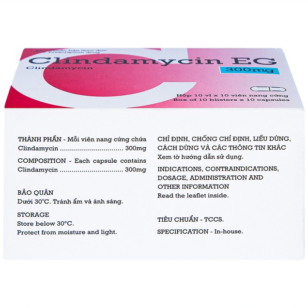 Tại Việt Nam, Clindamycin EG 300mg được các bệnh viện lớn như Bạch Mai, Chợ Rẫy và Bệnh viện Nhiệt đới khuyến cáo sử dụng cho các trường hợp nhiễm khuẩn nặng. Giá bán lẻ của sản phẩm dao động từ 150.000 – 200.000 VNĐ/hộp 100 viên (dữ liệu cập nhật tháng 10/2025), dễ dàng tìm mua tại các nhà thuốc uy tín như Long Châu, Pharmacity hoặc Trung Tâm Thuốc Central Pharmacy.