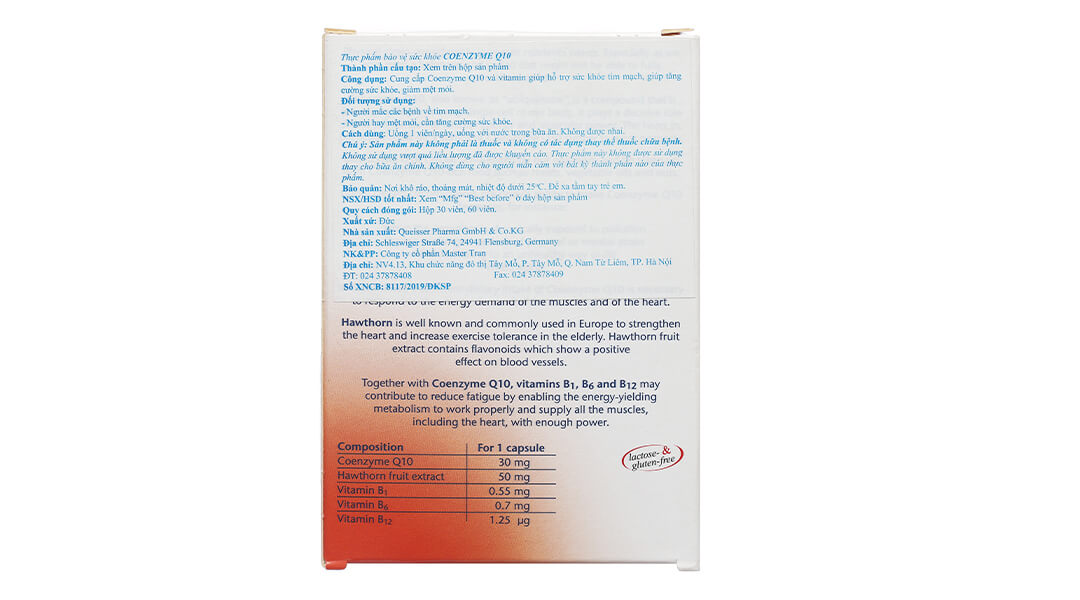 - Coenzyme Q10 (Ubiquinone): 100mg – dạng tự nhiên, dễ hấp thu.