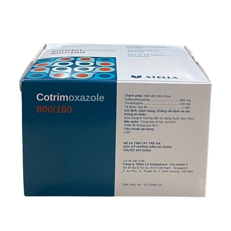 Cotrimoxazole 800/160 Stella Pharm vẫn là một trong những kháng sinh đường uống hiệu quả, kinh tế và được tin dùng nhất hiện nay tại Việt Nam trong điều trị nhiễm khuẩn đường tiết niệu, hô hấp, tiêu hóa và dự phòng PCP ở bệnh nhân HIV.