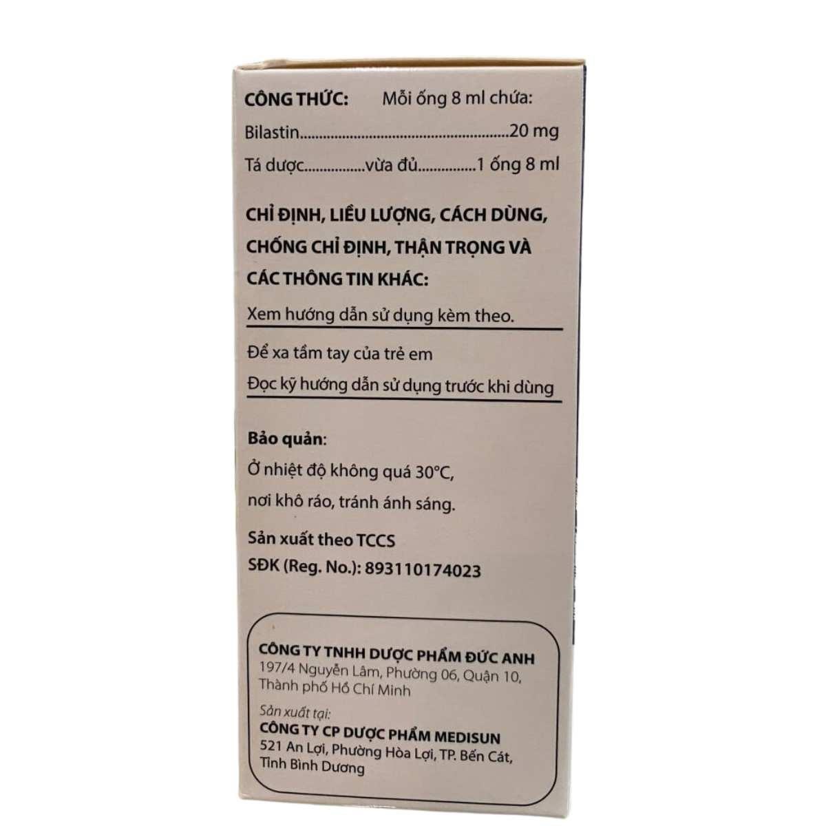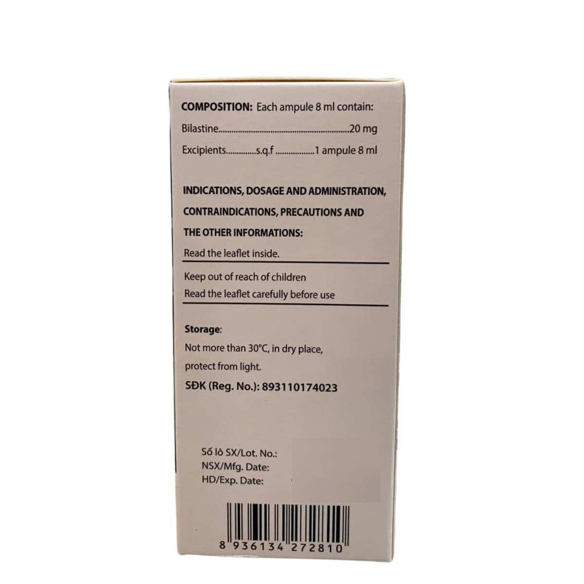 - Hộp 4 vỉ x 5 ống x 8ml (dạng dung dịch uống, đôi khi ghi 20mg/8ml).