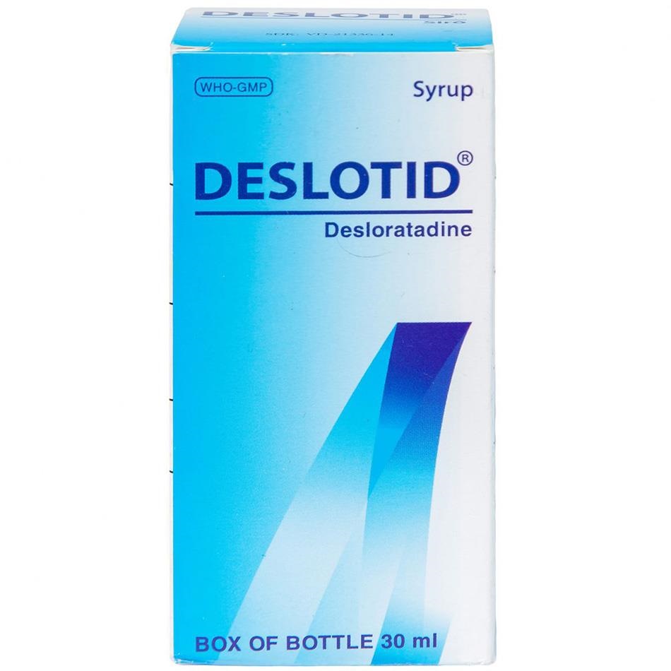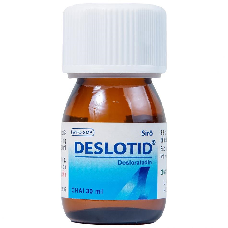 Deslotid 30ml là thuốc dạng siro uống (dung dịch), chứa hoạt chất chính Desloratadine – một kháng histamin thế hệ thứ hai, là chất chuyển hóa hoạt động của loratadine.