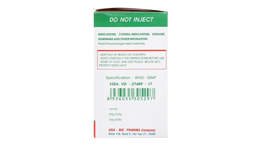- Nhà sản xuất: Công ty TNHH Dược phẩm USA – NIC (USA – NIC Pharma), Việt Nam.
