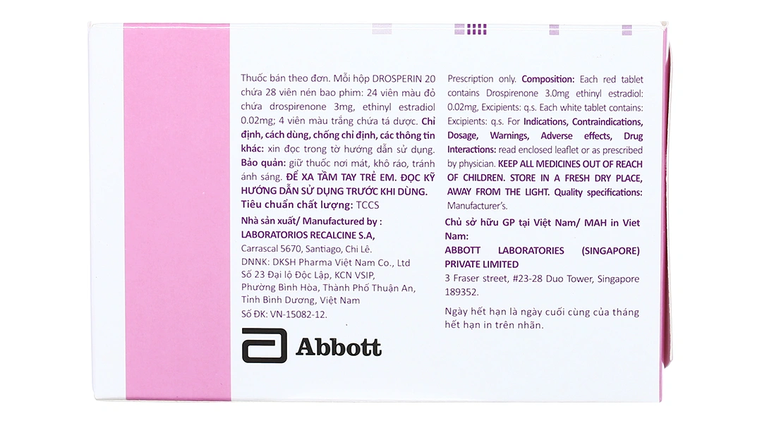 Nếu bạn đang tìm kiếm thông tin về thuốc Drosperin 20, cách dùng Drosperin 20, tác dụng phụ Drosperin 20, giá Drosperin 20 2026 hay so sánh với các loại tránh thai khác, bài viết đã cung cấp đầy đủ. Chúc bạn sức khỏe tốt và lựa chọn phương pháp ngừa thai phù hợp nhất!