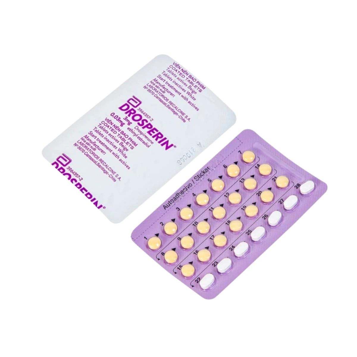Drosperin là thuốc tránh thai kết hợp dạng viên nén bao phim uống hàng ngày, mỗi vỉ 28 viên: