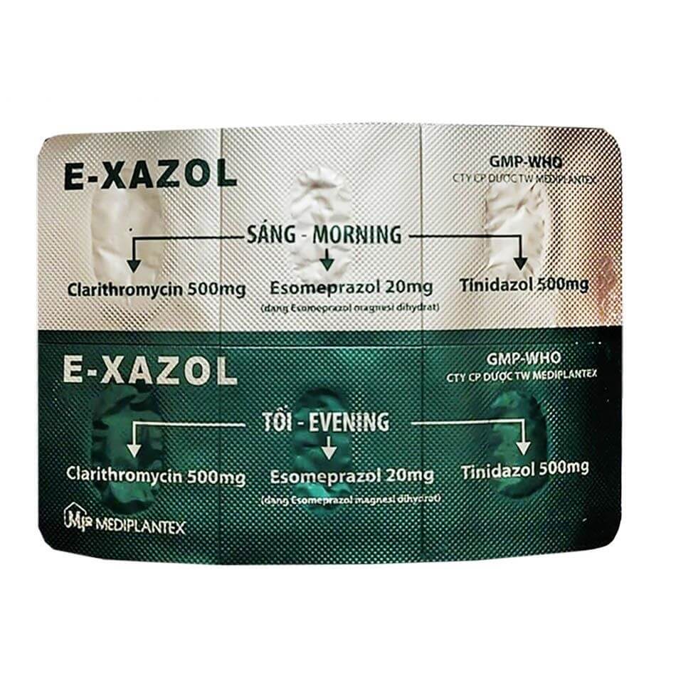 Thuốc E-Xazol là một giải pháp hiệu quả trong điều trị viêm loét dạ dày – tá tràng do vi khuẩn H. pylori, nhờ sự kết hợp của Clarithromycin, Tinidazol, và Esomeprazol. Với cơ chế tác dụng đồng bộ, thuốc không chỉ tiêu diệt vi khuẩn mà còn bảo vệ niêm mạc dạ dày và thúc đẩy quá trình lành vết loét. Tuy nhiên, để đảm bảo an toàn và hiệu quả, người bệnh cần sử dụng thuốc theo chỉ định của bác sĩ, tuân thủ đúng liều lượng và lưu ý các tương tác thuốc cũng như tác dụng phụ có thể xảy ra.