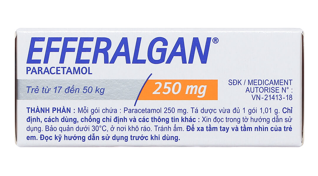 - Ví dụ: Trẻ nặng 20kg có thể dùng 200-300mg/lần (1 gói Efferalgan 250mg), tối đa 4-6 lần/ngày, tương đương 1200mg/ngày.