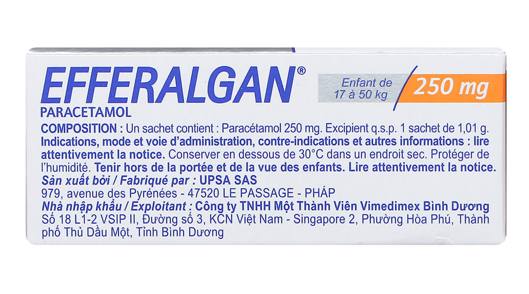 Efferalgan 250mg là một loại thuốc giảm đau và hạ sốt an toàn, hiệu quả cho trẻ em từ 17-50kg, với thành phần Paracetamol giúp giảm nhanh các triệu chứng đau đầu, đau răng, nhức mỏi cơ, và sốt do cảm cúm. Để đạt hiệu quả tối ưu và tránh tác dụng phụ, cần sử dụng thuốc đúng liều lượng, tuân thủ hướng dẫn của bác sĩ, và kết hợp với các biện pháp chăm sóc sức khỏe phù hợp. Nếu bạn có bất kỳ thắc mắc nào về Efferalgan 250mg, hãy liên hệ bác sĩ hoặc dược sĩ để được tư vấn chi tiết.