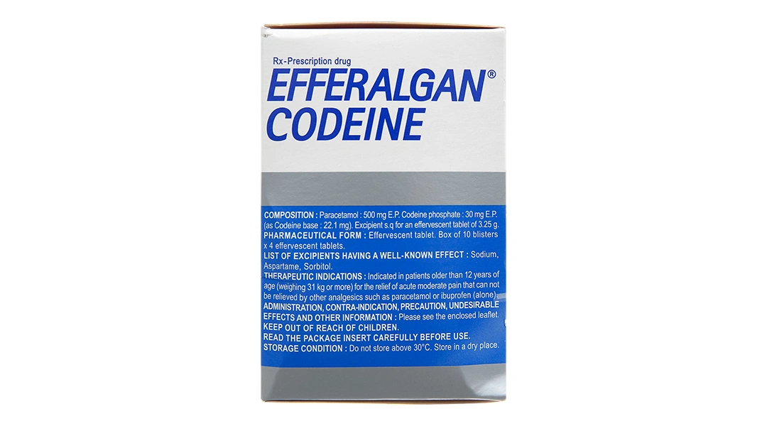 Thuốc được đóng gói phổ biến dưới dạng hộp 10 vỉ × 4 viên hoặc 25 vỉ × 4 viên, dễ bảo quản và sử dụng tại nhà. Giá thuốc Efferalgan Codeine 500/30 dao động tùy nhà thuốc (khoảng 150.000 – 250.000 VNĐ/hộp tùy thời điểm), nhưng bạn nên mua tại các hiệu thuốc lớn có nguồn gốc rõ ràng để tránh hàng giả.