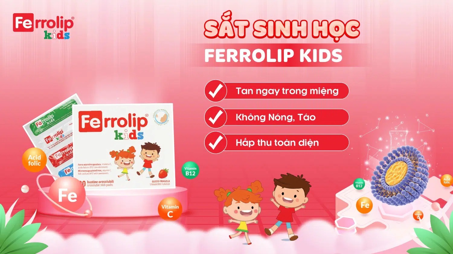 | → Kết luận: Ferrolip Kids tối ưu cho trẻ nhờ công nghệ bao vi nang và phức hợp vitamin toàn diện |