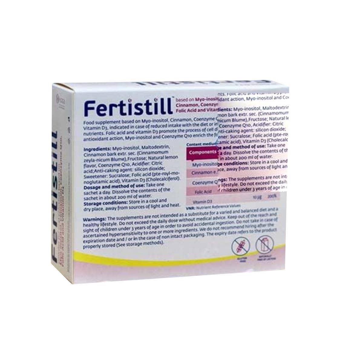 Fertistill là TPBVSK nhập khẩu chính ngạch từ Ý, được thiết kế dành riêng cho phụ nữ dự định mang thai hoặc đang gặp vấn đề về chất lượng trứng, rụng trứng không đều. Sản phẩm không phải thuốc chữa bệnh mà là bổ sung dưỡng chất giúp hỗ trợ sức khỏe sinh sản nữ giới từ bên trong.