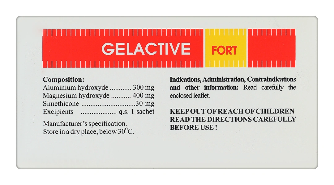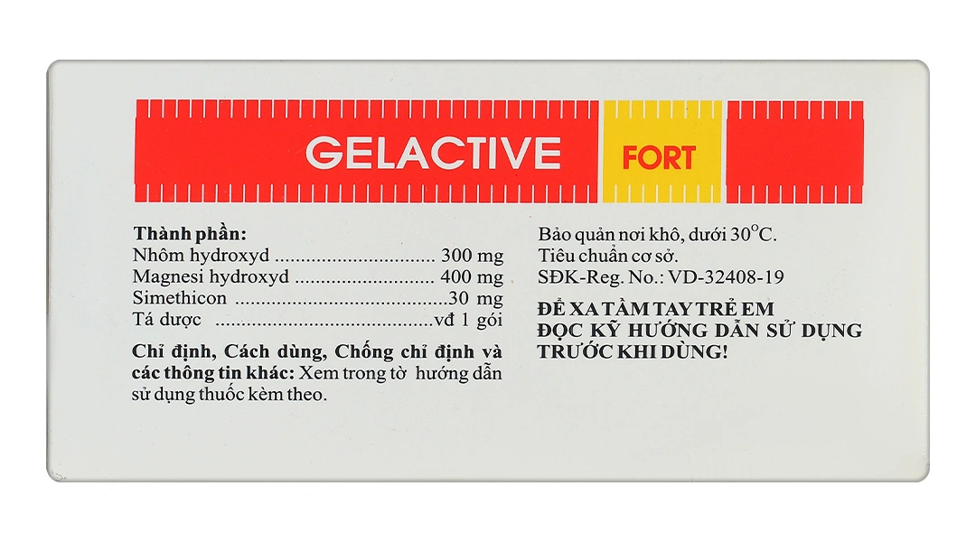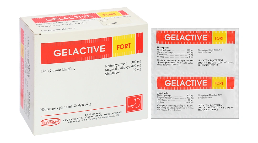 Gelactive Fort là một trong những thuốc kháng acid phổ biến nhất tại Việt Nam, dạng hỗn dịch uống (gel uống) giúp làm dịu nhanh các triệu chứng ợ chua, ợ nóng, đầy hơi, khó tiêu, nóng rát thượng vị do tăng tiết acid dạ dày. Sản phẩm kết hợp Nhôm hydroxyd, Magnesi hydroxyd và Simethicon, mang lại hiệu quả trung hòa acid nhanh, kéo dài và giảm đầy hơi hiệu quả.