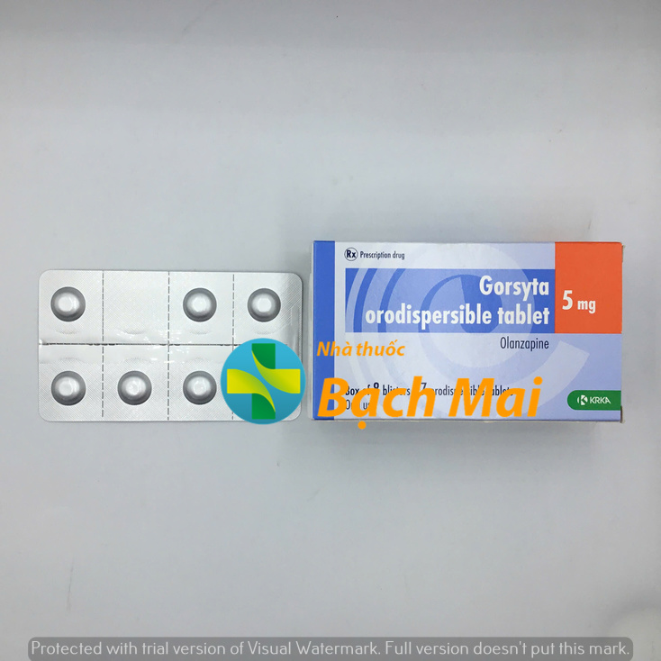 Gorsyta 5mg là sản phẩm của KRKA, chứa hoạt chất Olanzapine, một dẫn chất dibenzodiazepin, thuộc nhóm thuốc chống loạn thần không điển hình. Thuốc được bào chế dưới dạng viên nén bao phim, giúp điều trị các triệu chứng tâm thần phân liệt, bao gồm triệu chứng dương tính (ảo giác, hoang tưởng) và âm tính (cảm xúc phẳng lặng, thu mình).