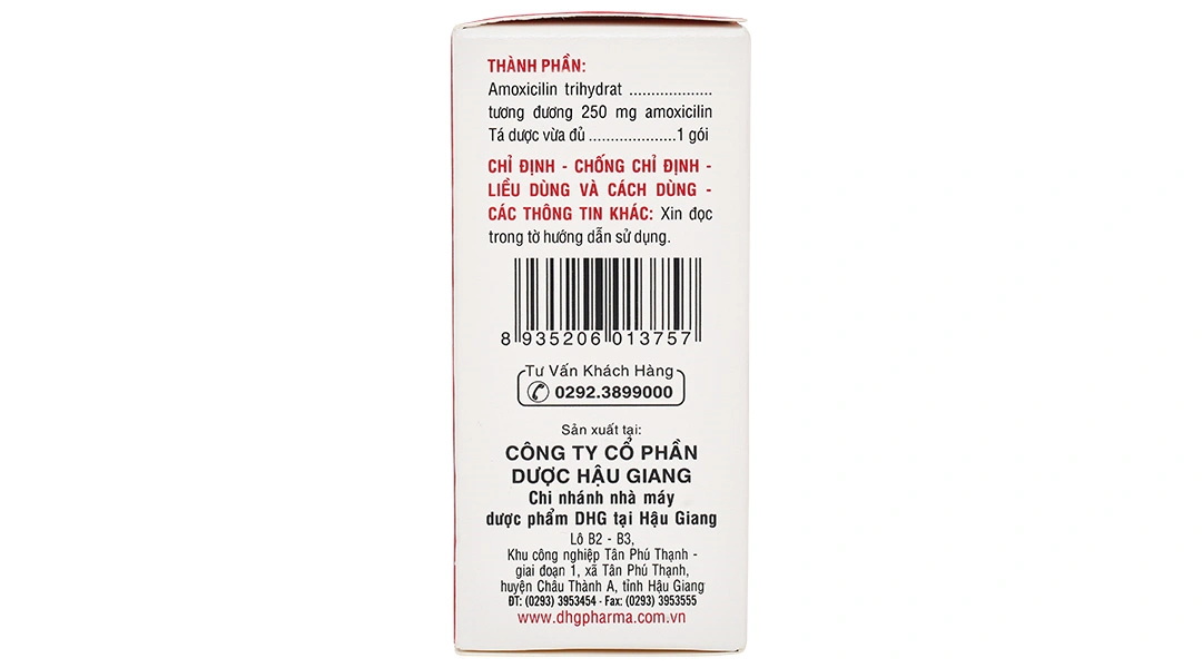- Nhà sản xuất: Công ty Cổ phần Dược Hậu Giang (DHG Pharma), Việt Nam