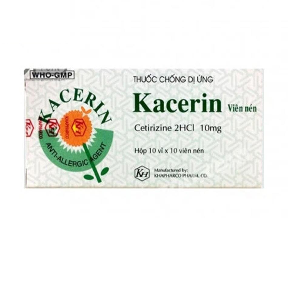 Kacerin 10mg (tên đầy đủ: Kacerin Tablet) là viên nén chứa hoạt chất kháng histamin Cetirizine dihydrochloride.