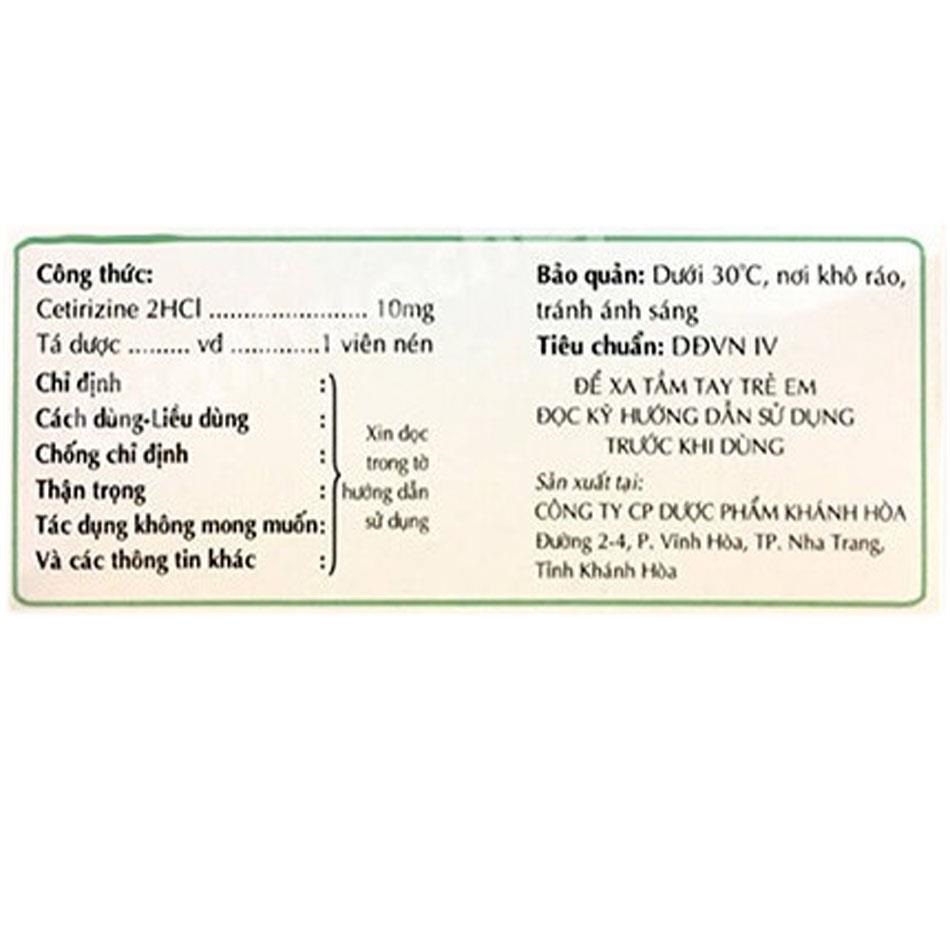 - Thành phần hoạt chất: Cetirizine dihydrochloride 10mg.
