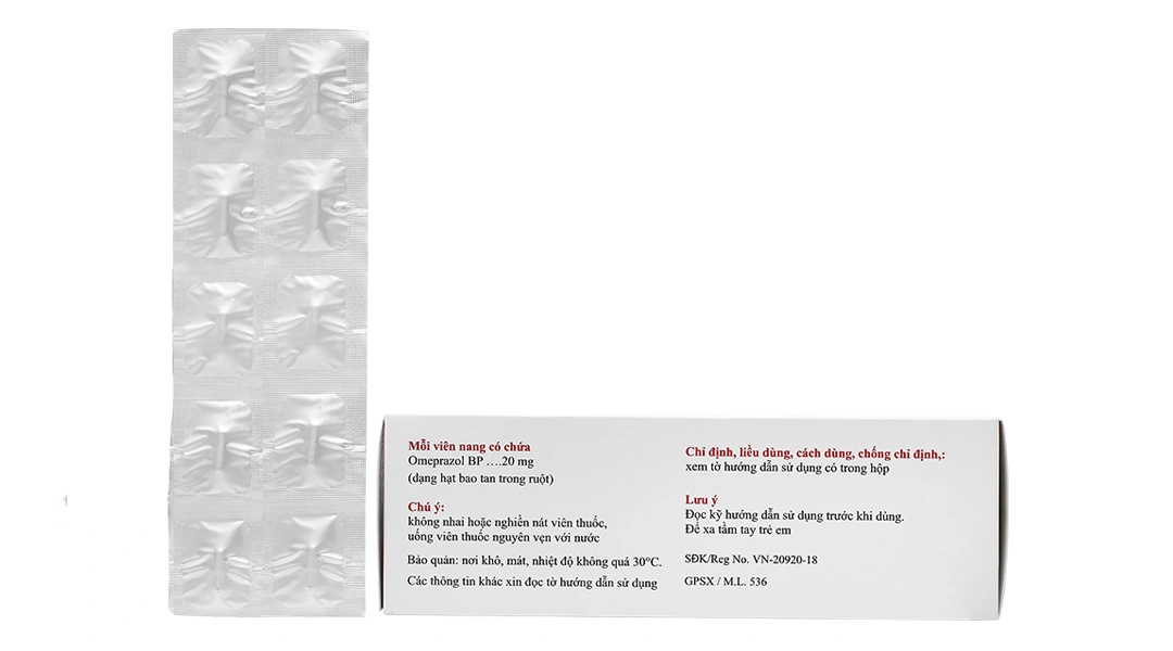 - Omeprazol BP 20 mg (dạng vi hạt bao tan trong ruột).
