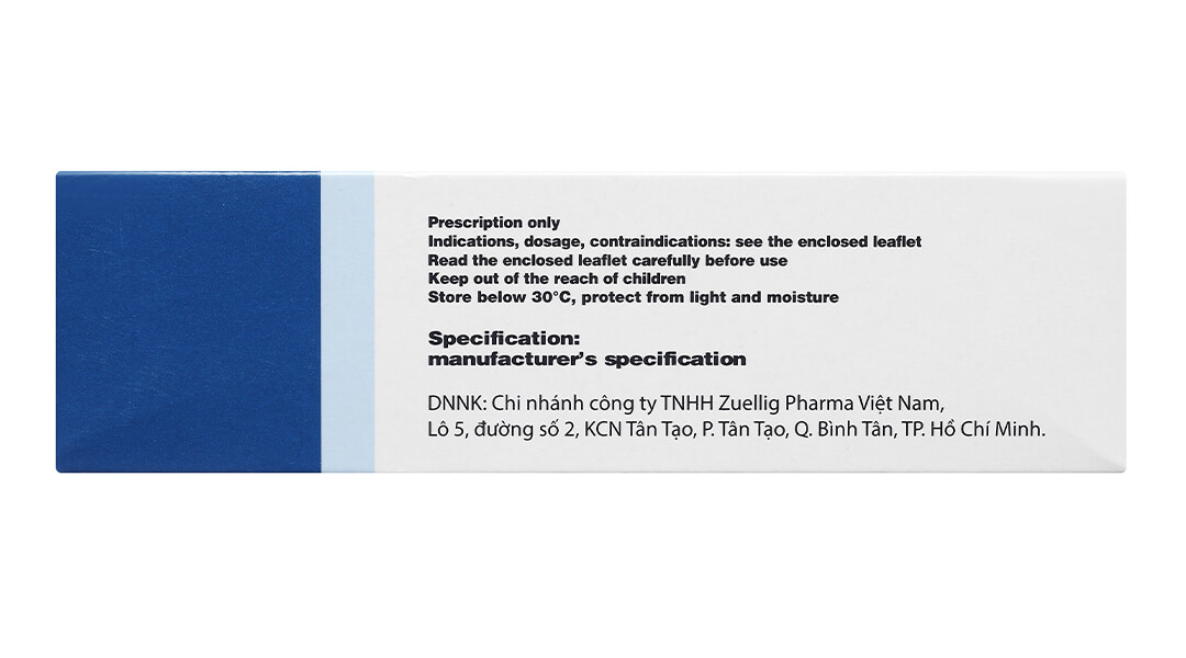 - Tá dược: Lactose monohydrate, tinh bột ngô, talc, gelatin, titanium dioxide, natri lauryl sulfate, silica khan, và các thành phần khác.