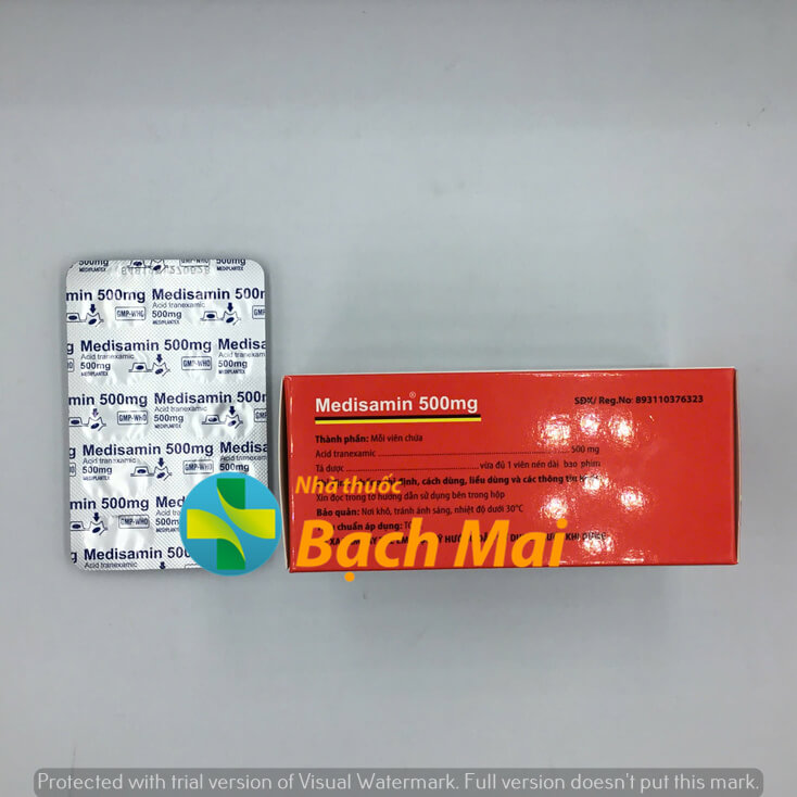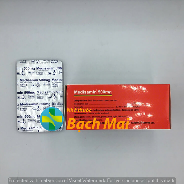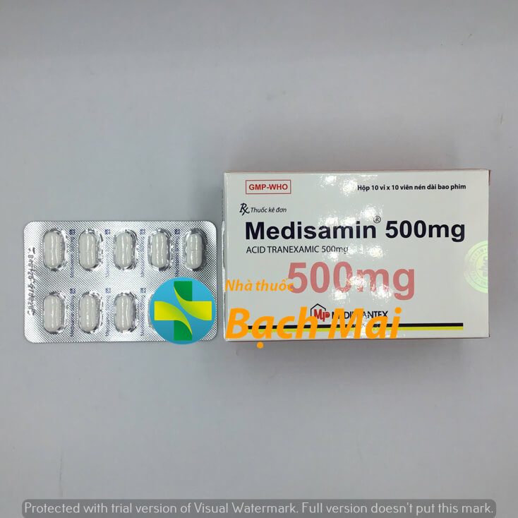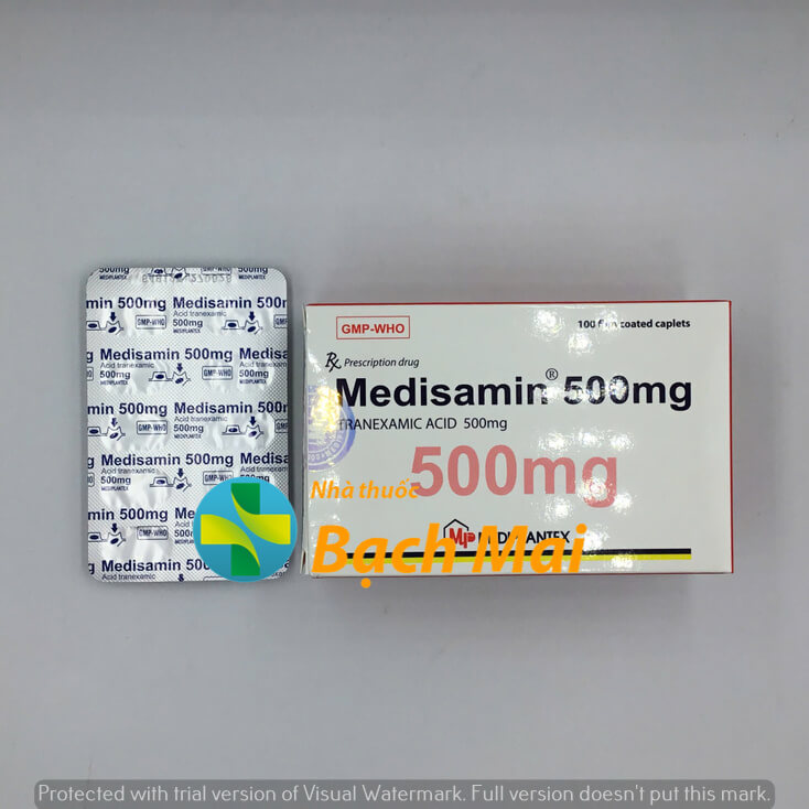 4. Medisamin 500mg khác gì Transamin? Cùng hoạt chất Acid Tranexamic, nhưng Medisamin là sản phẩm Việt Nam giá rẻ hơn.