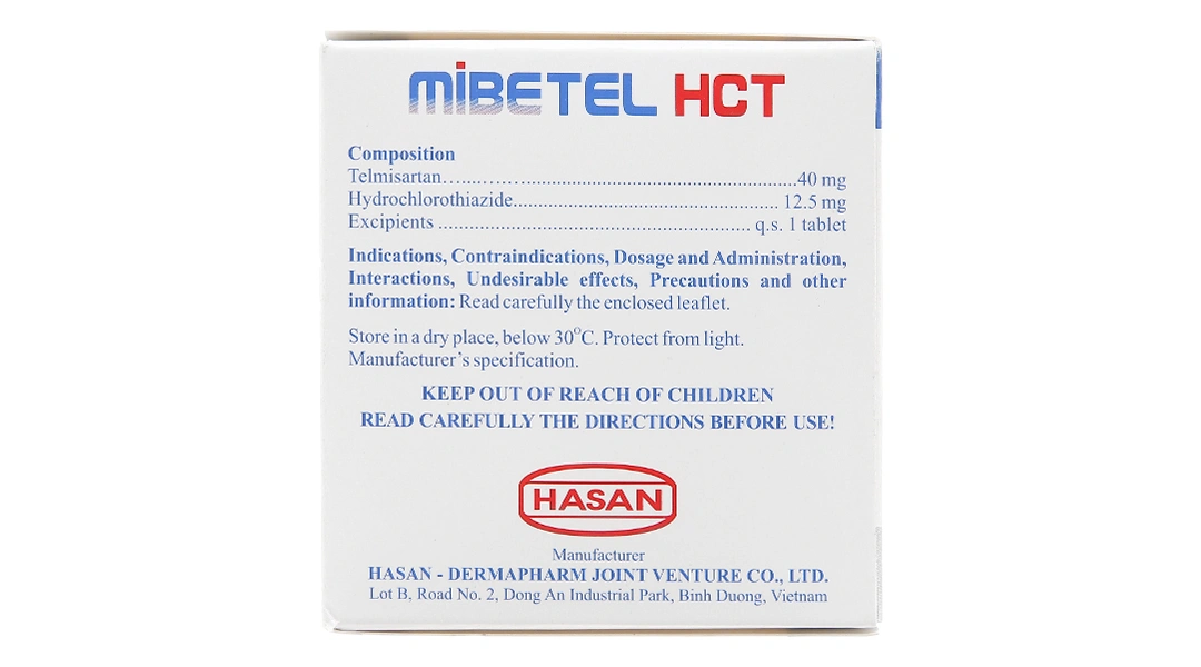 Trong xã hội hiện đại với nhịp sống hối hả, tăng huyết áp đang trở thành “kẻ giết người thầm lặng” ảnh hưởng đến hàng triệu người Việt Nam. Theo thống kê từ Bộ Y tế, hơn 25% người lớn trên 25 tuổi mắc bệnh này, dẫn đến nguy cơ đột quỵ, nhồi máu cơ tim và suy thận. Nếu bạn đang tìm kiếm giải pháp kiểm soát huyết áp hiệu quả, thuốc Mibetel HCT 40mg/12.5mg có thể là lựa chọn lý tưởng. Đây là thuốc phối hợp giữa telmisartan và hydrochlorothiazide, được sản xuất bởi Công ty TNHH Liên doanh Hasan – Dermapharm (Việt Nam), với số đăng ký VD-30848-18. Bài viết này sẽ cung cấp thông tin chi tiết về Mibetel HCT 40mg/12.5mg, từ công dụng, thành phần đến cách dùng và lưu ý, giúp bạn sử dụng thuốc an toàn, tối ưu hóa sức khỏe tim mạch.