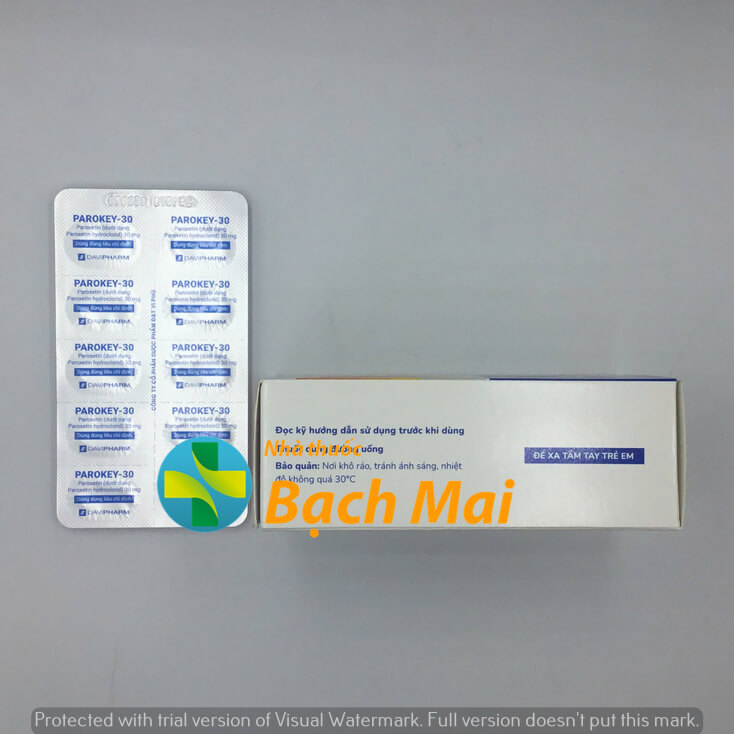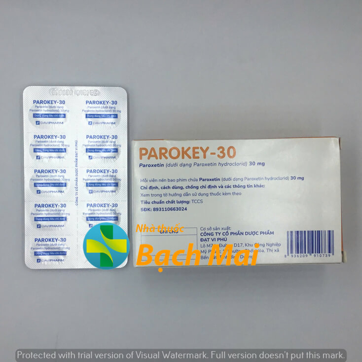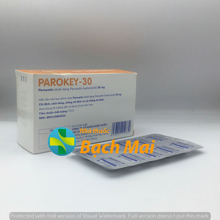 PAROKEY & PAROKEY – 30 có chứa thành phần chính có tác dụng dược lý là Paroxetin – một loại thuốc chống trầm cảm thuộc nhóm ức chế tái hấp thu chọn lọc Serotonin (SSRI). Nồng độ hormone Serotonin thấp được cho là nguyên nhân gây ra bệnh trầm cảm và các tình trạng có liên quan khác. Paroxetin đưa nồng độ Serotonin về mức bình thường. Paroxetin dùng ở người lớn để điều trị: