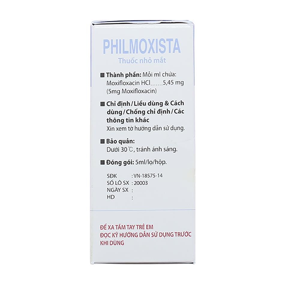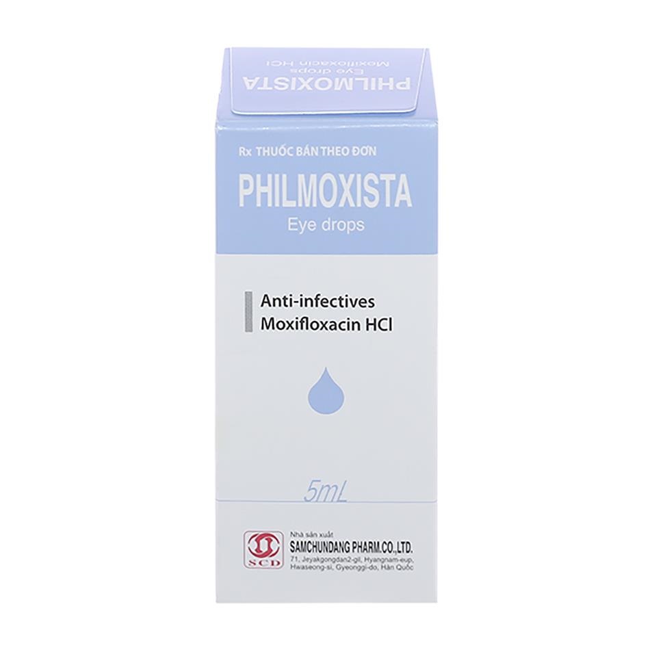 Philmoxista là tên thương mại của dung dịch nhỏ mắt chứa Moxifloxacin – kháng sinh fluoroquinolon thế hệ 4 có phổ kháng khuẩn rất rộng. Thuốc được thiết kế đặc biệt để sử dụng tại chỗ (small mắt), giúp đạt nồng độ kháng sinh cao ngay tại vị trí nhiễm khuẩn mà ít gây tác dụng toàn thân.
