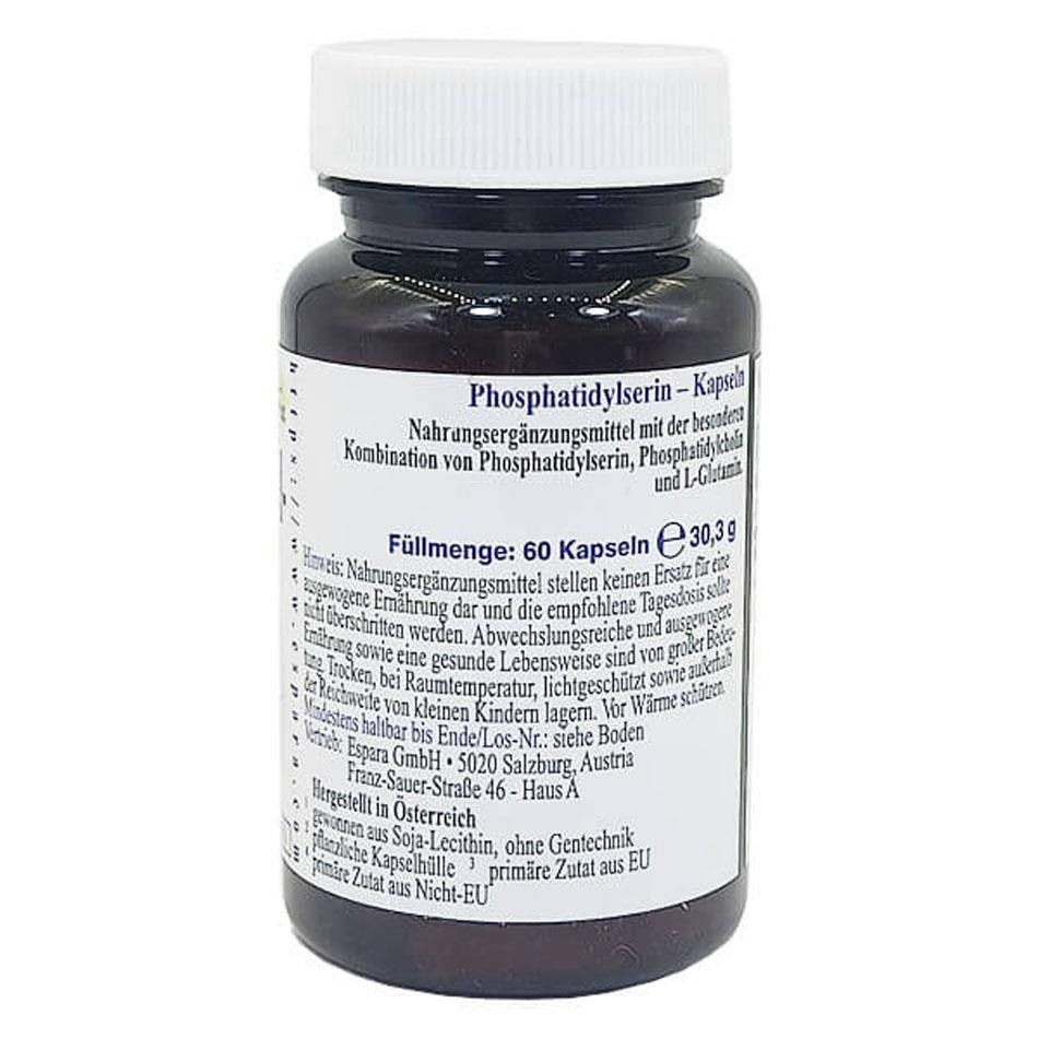 Mỗi viên nang Phosphatidyl Serin Espara (hộp 60 viên, tổng trọng lượng 30,3g) chứa: