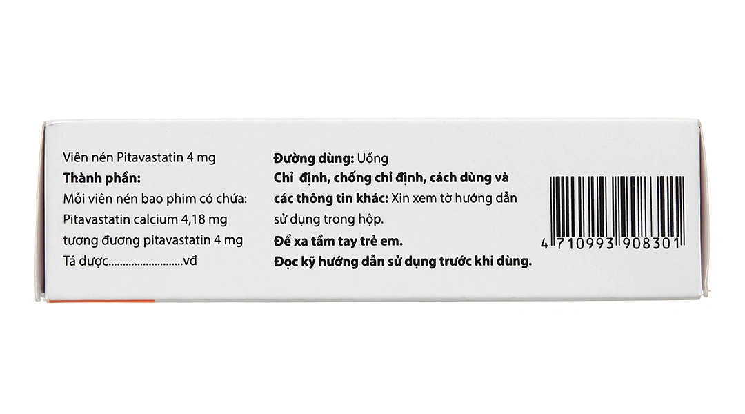 - Pitavastatin calci: tương đương 4 mg pitavastatin