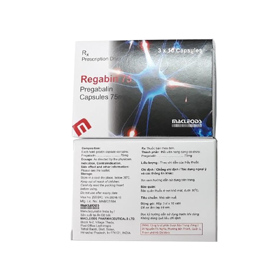 Regabin 75mg là thuốc generic (tương đương sinh học) của Pregabalin, thường được sản xuất bởi Macleods Pharmaceuticals Limited (Ấn Độ), số đăng ký tại Việt Nam VN-20016-16 (hoặc mã cũ 890110410823). Thuốc đóng gói phổ biến dạng hộp 3 vỉ × 10 viên hoặc hộp 1 vỉ × 10 viên, rất dễ tìm mua tại các nhà thuốc trên toàn quốc.