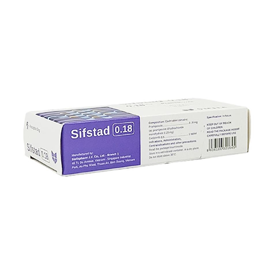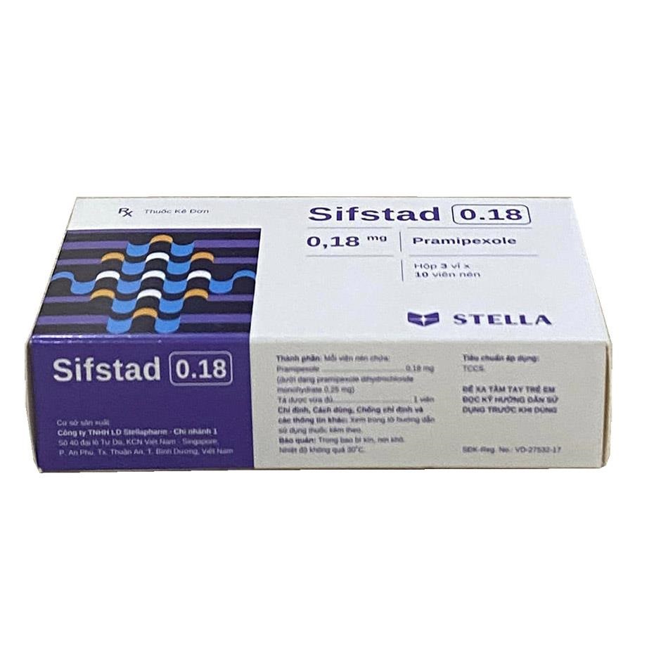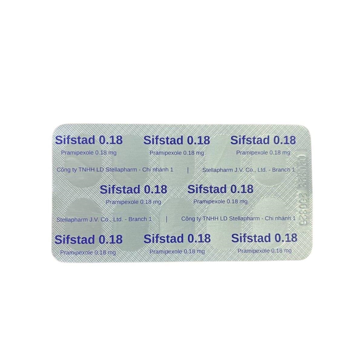 Sifstad 0.18mg là thuốc kê đơn thuộc nhóm chủ vận dopamin không thuộc dẫn xuất ergot (non-ergoline dopamine agonist), với hoạt chất chính là pramipexole.