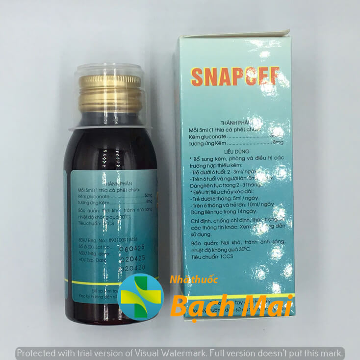 Siro Snapcef 100ml là dung dịch uống bổ sung kẽm (dạng kẽm gluconat), được bào chế dưới dạng siro ngọt, dễ uống, phù hợp cho trẻ em và người lớn cần bổ sung vi chất này.