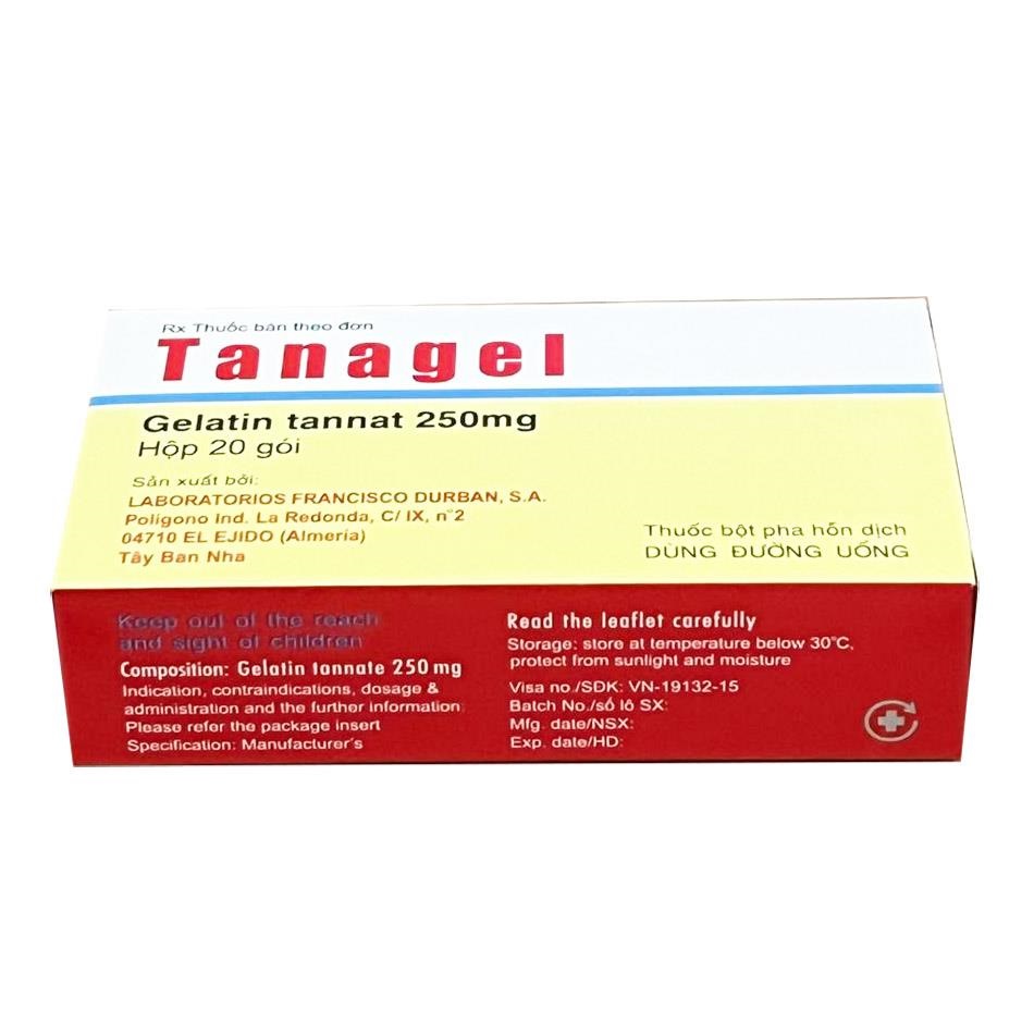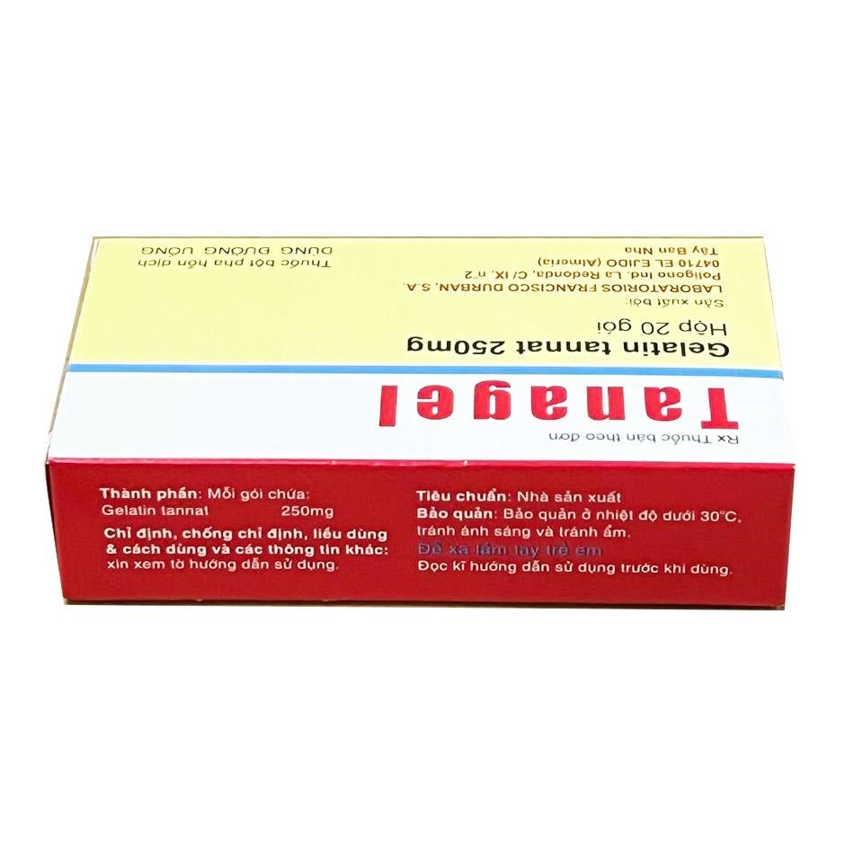 Tanagel 250mg là thuốc thuộc nhóm chống tiêu chảy (antidiarrheal) dạng bột pha hỗn dịch uống, do Laboratorios Francisco Durban, S.A. (Tây Ban Nha) sản xuất và được phân phối chính hãng tại Việt Nam. Thuốc có số đăng ký VN-19132-15, đóng gói hộp 20 gói bột, mỗi gói chứa 250mg hoạt chất chính.