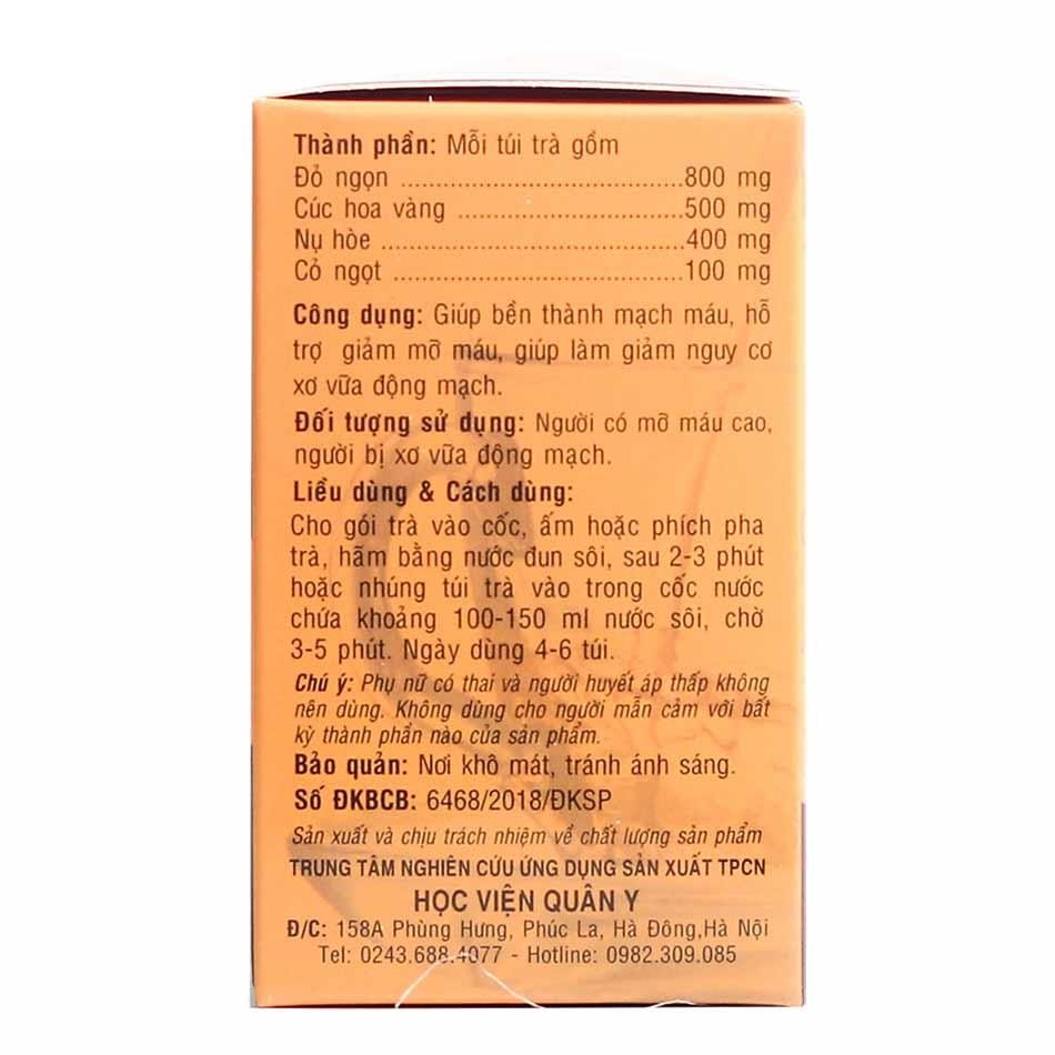 Mỗi gói trà 1,8g chứa các thảo dược quý theo tỷ lệ nghiên cứu đặc biệt của Học Viện Quân Y: