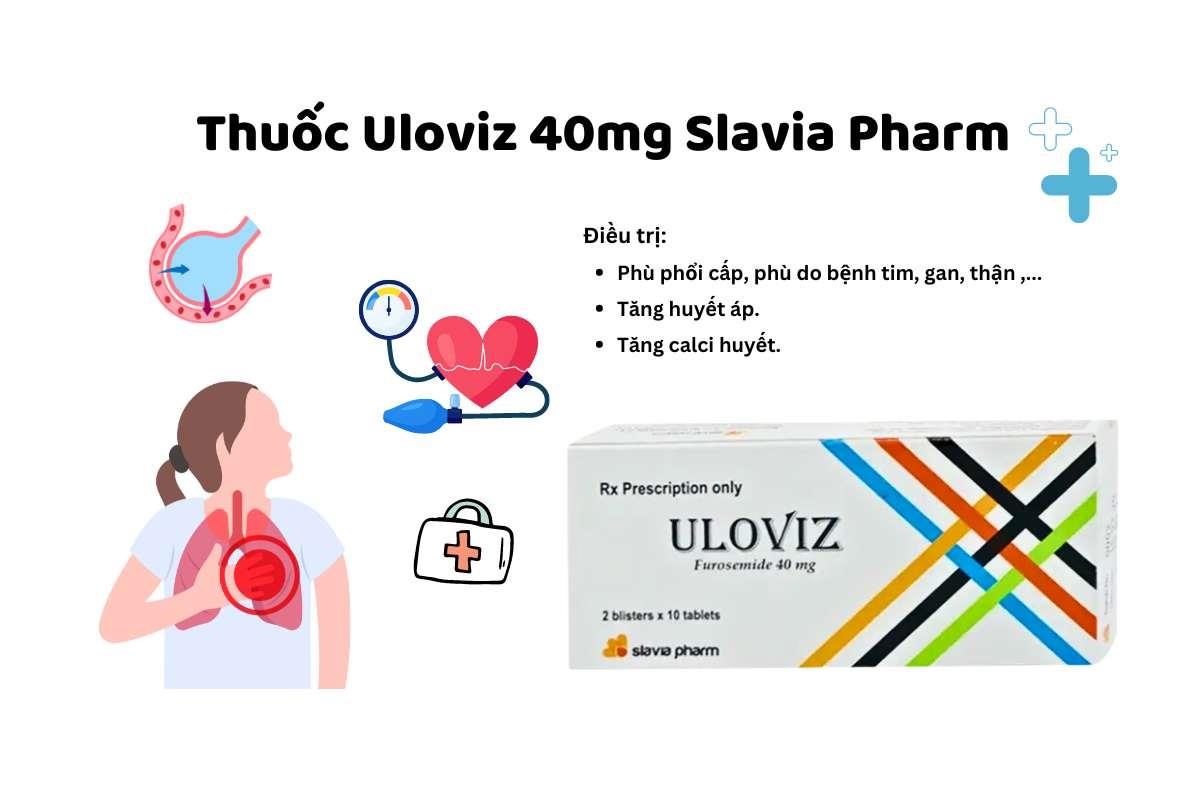 Thuốc Uloviz 40mg (Furosemid 40mg) là một thuốc lợi tiểu quai hiệu quả cao, được sử dụng rộng rãi trong điều trị phù nề do suy tim, xơ gan, bệnh thận và hỗ trợ kiểm soát tăng huyết áp. Tuy nhiên, do tác dụng mạnh, thuốc đòi hỏi phải sử dụng đúng chỉ định, đúng liều và dưới sự giám sát chặt chẽ của bác sĩ để tránh mất cân bằng điện giải và các biến chứng nguy hiểm.